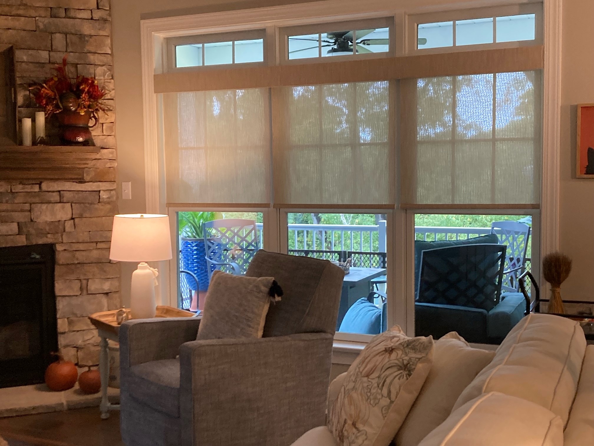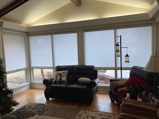 "Excellent product and service"We are 100% satisfied with the blinds and service we received from Lynn and Bill at Gotcha Covered. We wanted to purchase large motorized blinds for our living room and solarium. We liked having the in-home consultation in order to select the best style and color for home. We are pleased with the quality and appearance of blinds. Lynn was very good to work with and kept communications up-to-date throughout the project. Bill did a great job with the installation. The blinds and the service were both 5 star.- Susan Jeffries